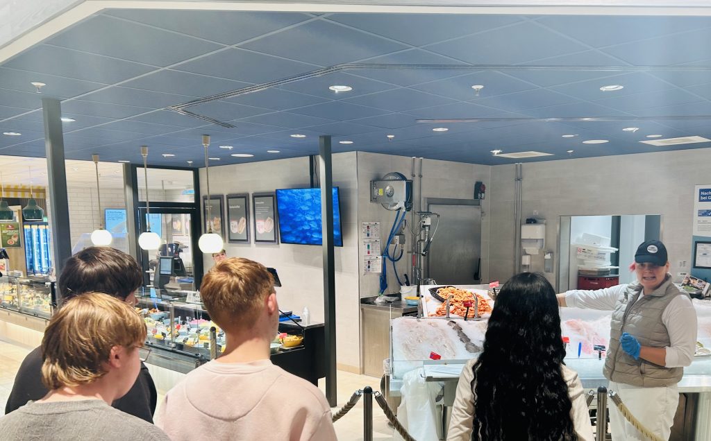 Während der Führung erhielten die Schüler*innen umfassende Einblicke in die unterschiedlichen Berufsfelder eines großen Lebensmittelmarktes. Besonders anschaulich wurden dabei die Tätigkeiten der Kassierer*innen, der Verkäufer*innen sowie der Metzgereiabteilung vorgestellt. Die praxisnahen Einblicke ermöglichten es den Lernenden, theoretische Inhalte aus dem Unterricht mit realen Arbeitsabläufen zu verbinden und ein besseres Verständnis für berufliche Anforderungen im Einzelhandel zu entwickeln.