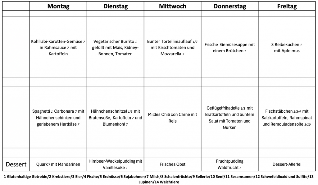 Der Speiseplan bietet täglich die Möglichkeit aus zwei Gerichten zu wählen.